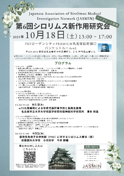 10月18日(土)の第6回シロリムス新作用研究会のご案内です。