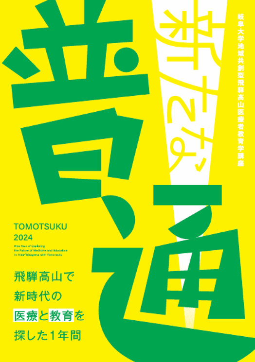 高山市をフィールドに、岐阜大学と高山市がDX時代の医療者教育を共創する講座として2024年4月岐阜大学医学部に地域共創型飛騨高山医療者教育学講座が開設されました。2名の専任教員が岐阜大学で診療・教育・研究等を行いつつ、週に2日は高山に滞在しています。1日は高山市内の中核病院(高山赤十字病院・久美愛厚生病院)において診療を行い、1日は教育活動を実践しています。地域共創型飛騨高山医療者教育学講座の「共創」を訓読みした「ともつく」を講座の愛称としています。
