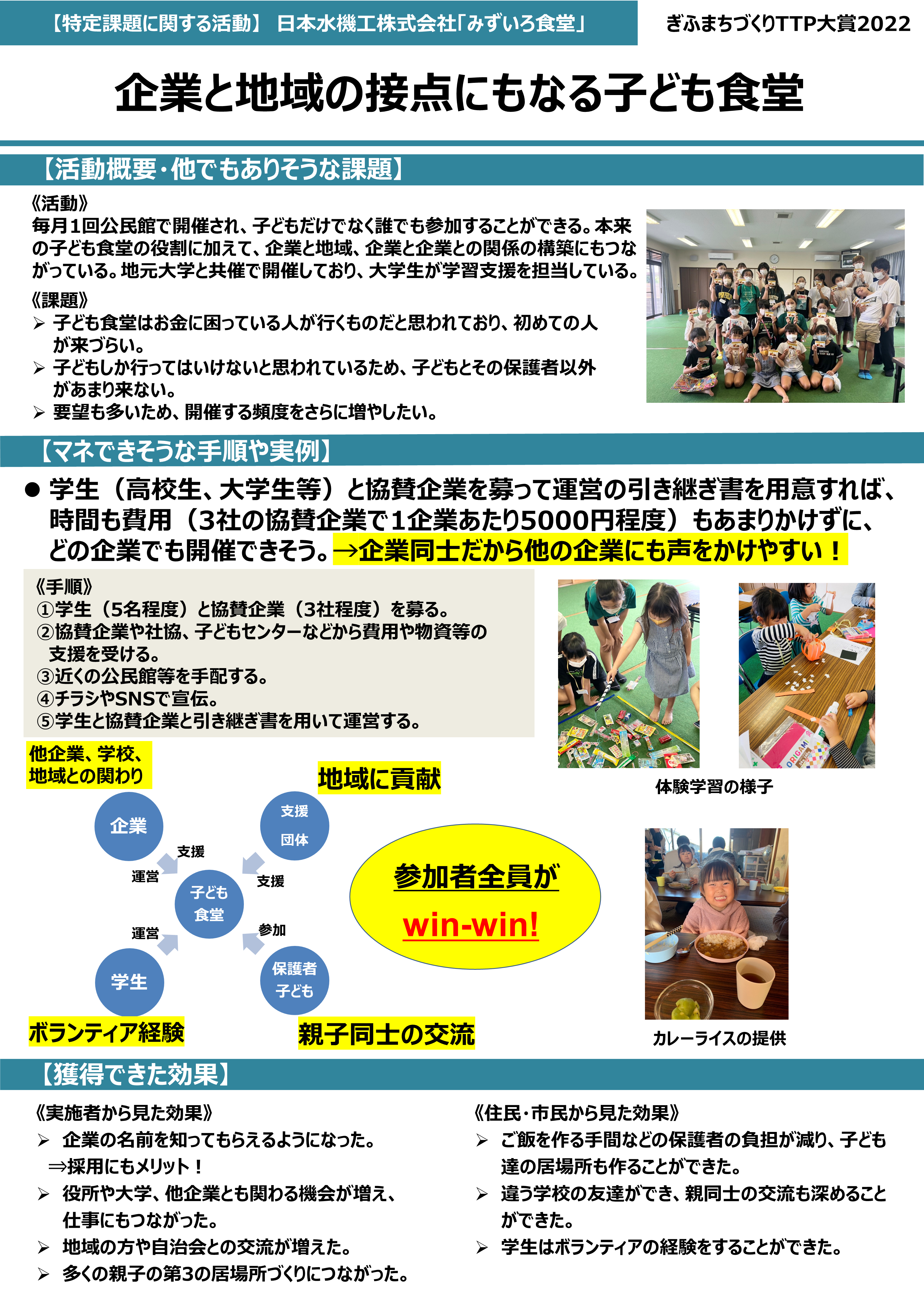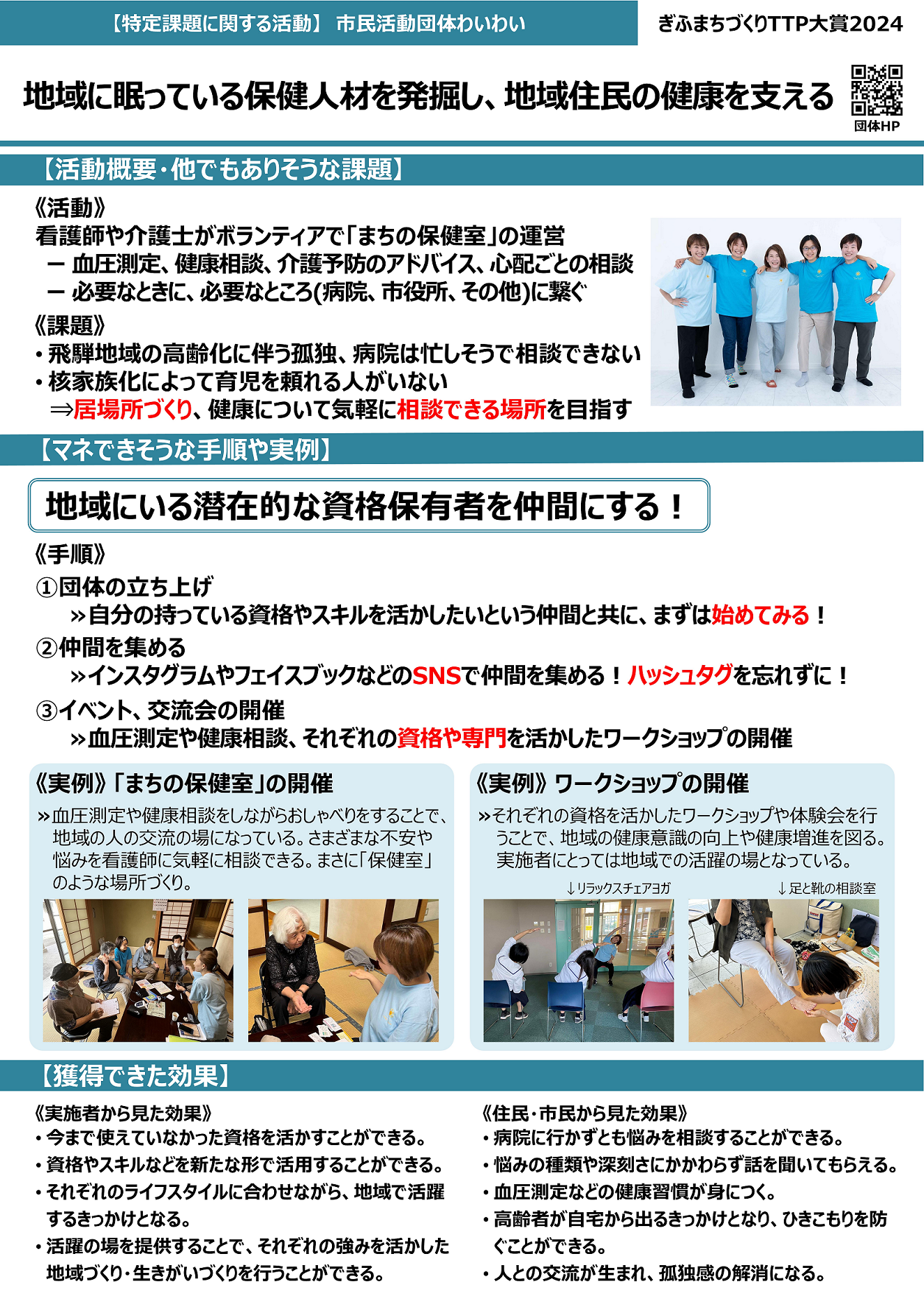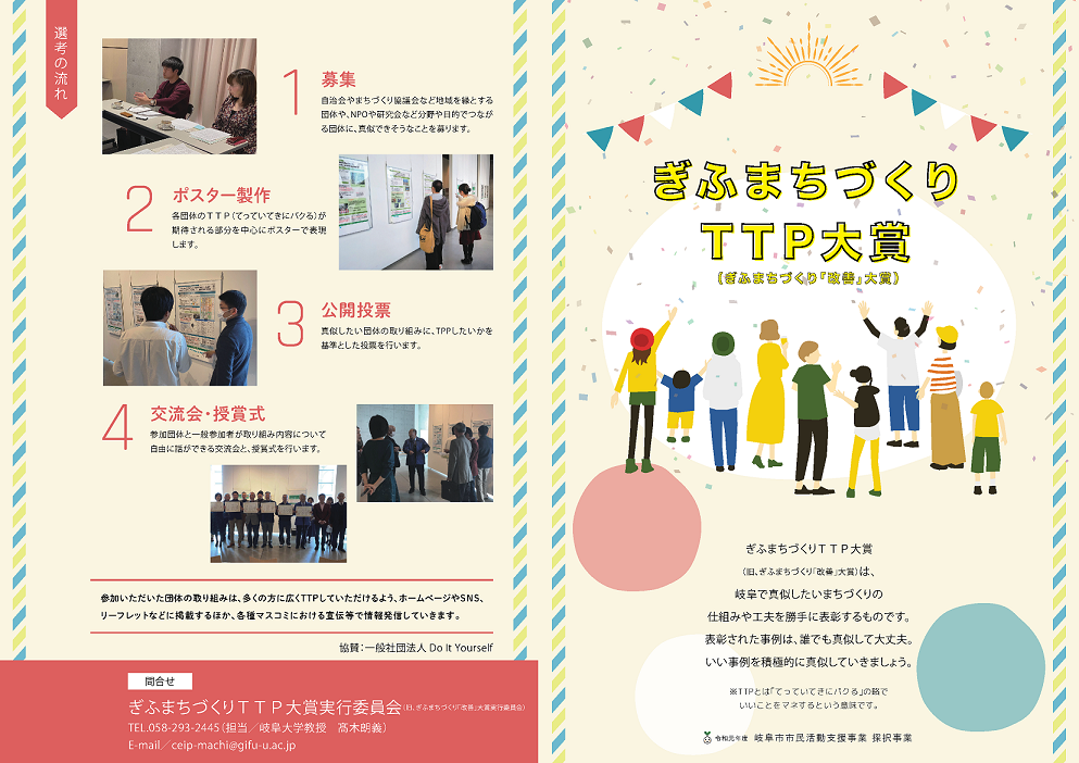 “ぎふまちづくりTTP大賞”とは、岐阜で真似したいまちづくりの仕組みや工夫を勝手に表彰するものです。