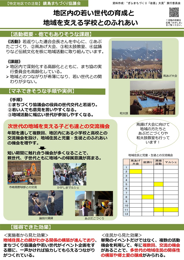 | 「県有数の地域資源の有効活用と 地域役員の世代交代による活動方向性の一新」 |