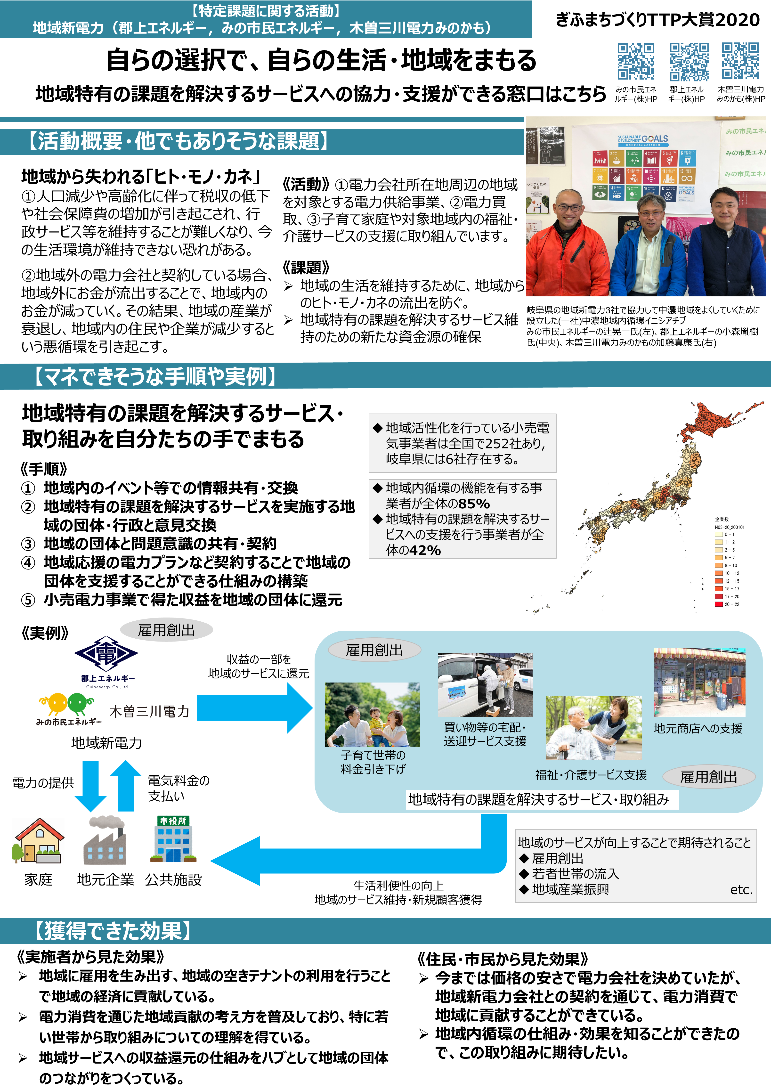 | 地域新電力(郡上エネルギー,みの市民エネルギー,木曽三川電力みのかも) | |||