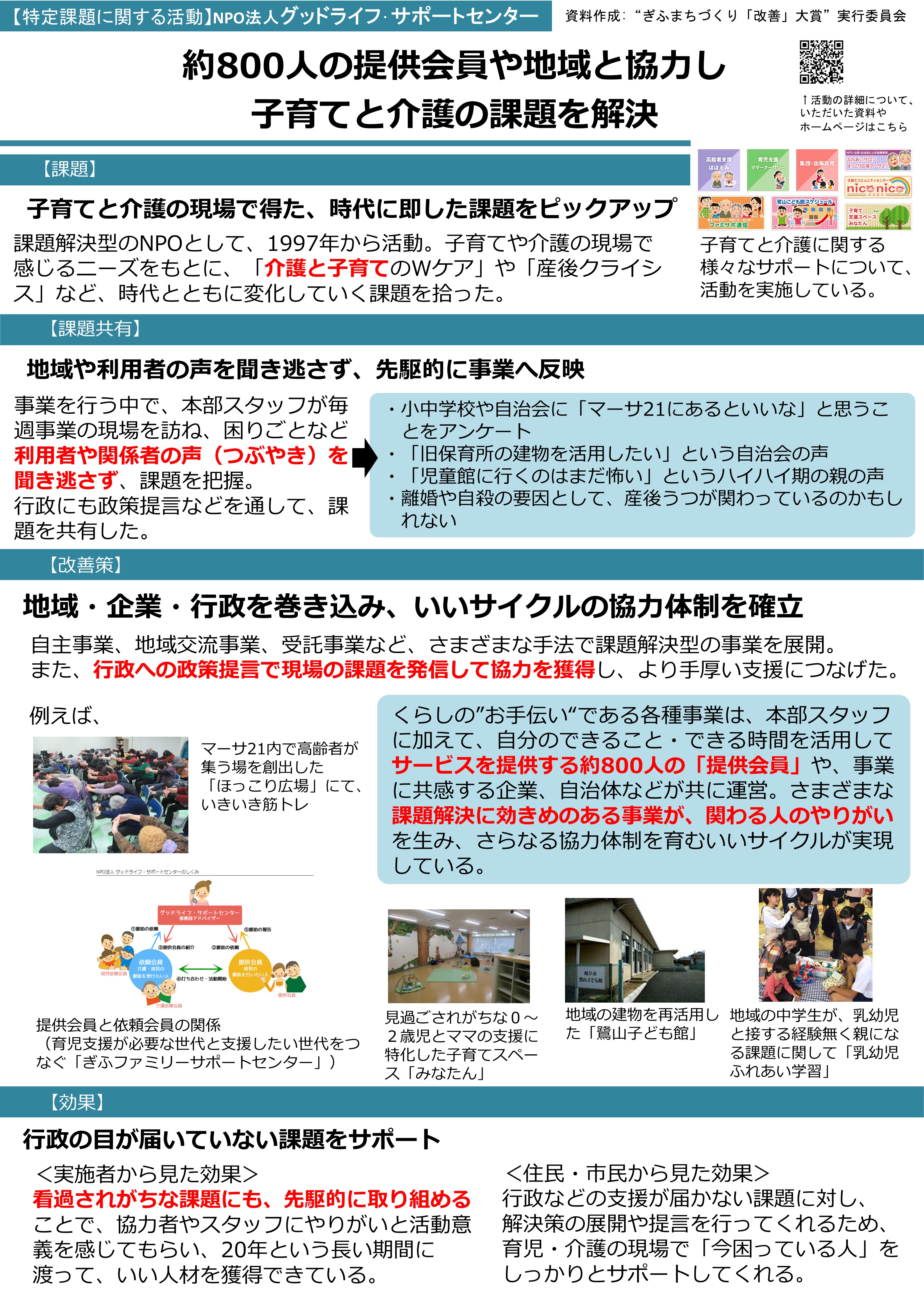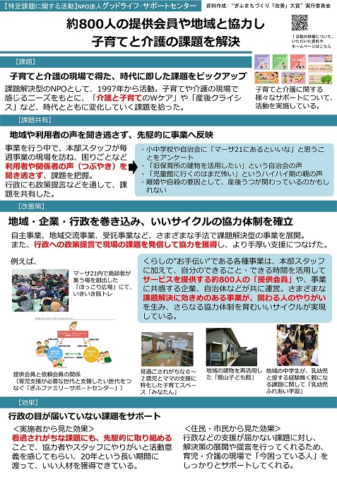 | 「自らの選択で、自らの生活・地域をまもる地域特有の課題を解決するサービスへの協力・支援ができる窓口はこちら」 | |||
