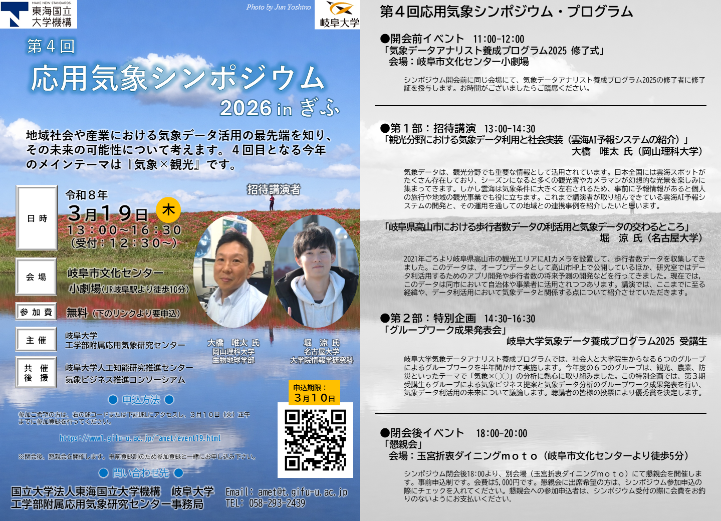 主催: 国立大学法人東海国立大学機構岐阜大学工学部附属応用気象研究センター
