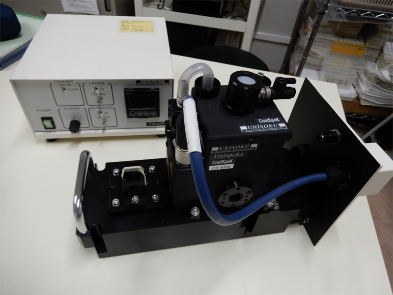 液体窒素温度(77K)付近までの吸収スペクトルを測定できるアタッチメントです。溶液および固体で測定できます。 -