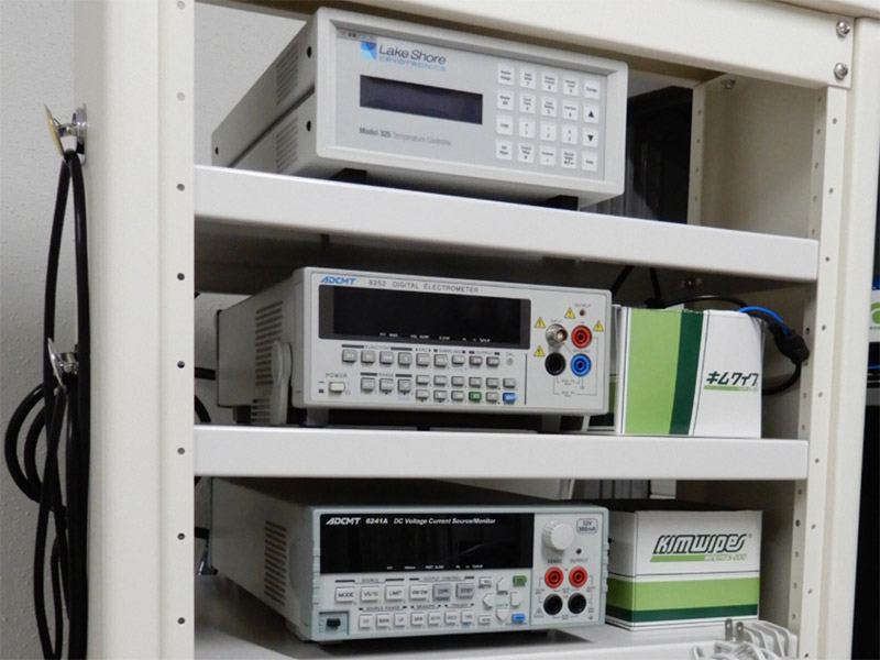 冷媒を補給することなく、電気だけで、4K付近まで冷やすことができます。伝導度の温度依存性をみるために使います。 -