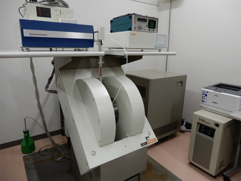 電子スピン共鳴装置で、不対電子があるとシグナルが観測できます。不対電子が、どの原子に、どのように存在するかがわかります。 -