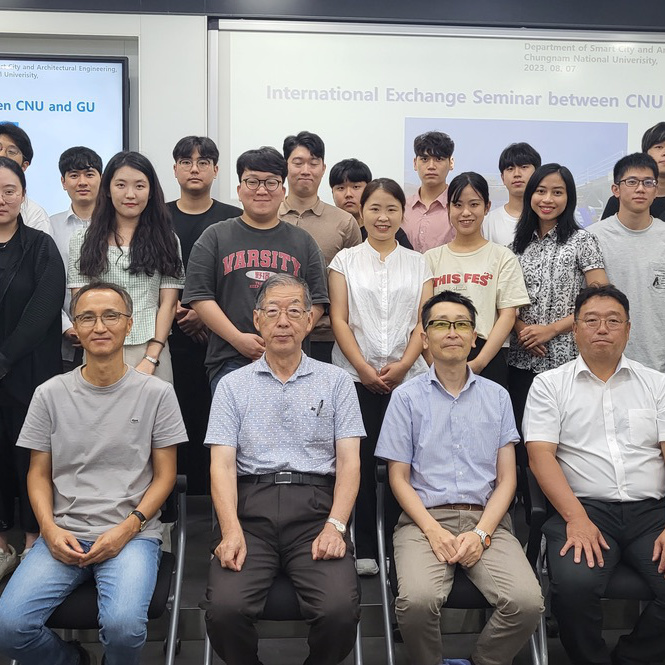上記の予定で修士課程全員と小林,六郷で韓国の忠南大学のYun HyunDo教授の研究室を訪問しました(ただし小林,六郷と1名の学生は8月8日に帰国).「予定」と書いたのは,10日滞在組は帰国便が台風の直撃を受け,3日ほど滞在が伸びたためです.
