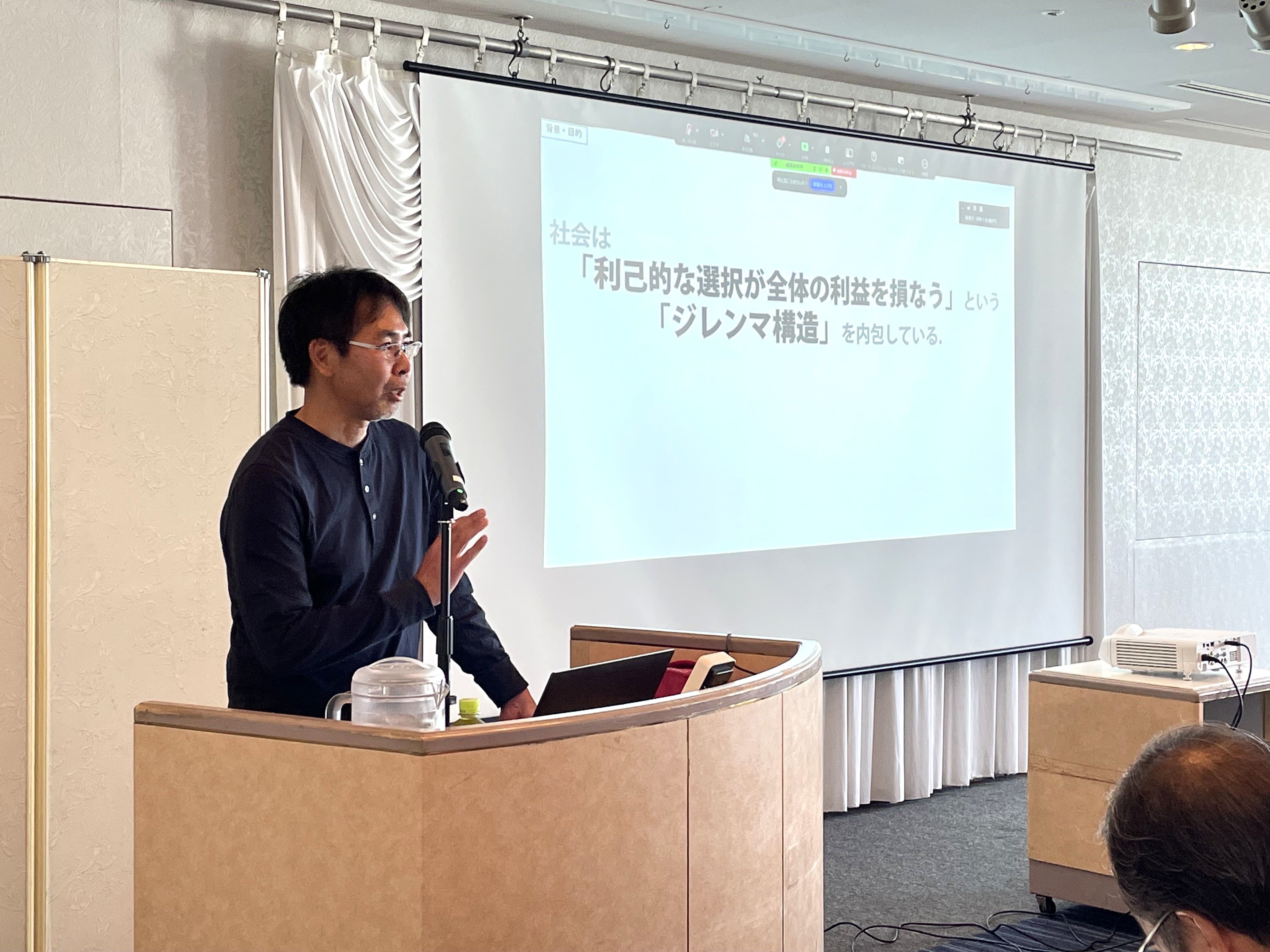 始めに、寺田和憲教授(岐阜大学工学部情報コース)が「心の理論を備えたAIによる実社会ジレンマの解消」と題して講演し、人間の意図や感情を理解できるAIの可能性と課題について紹介しました。