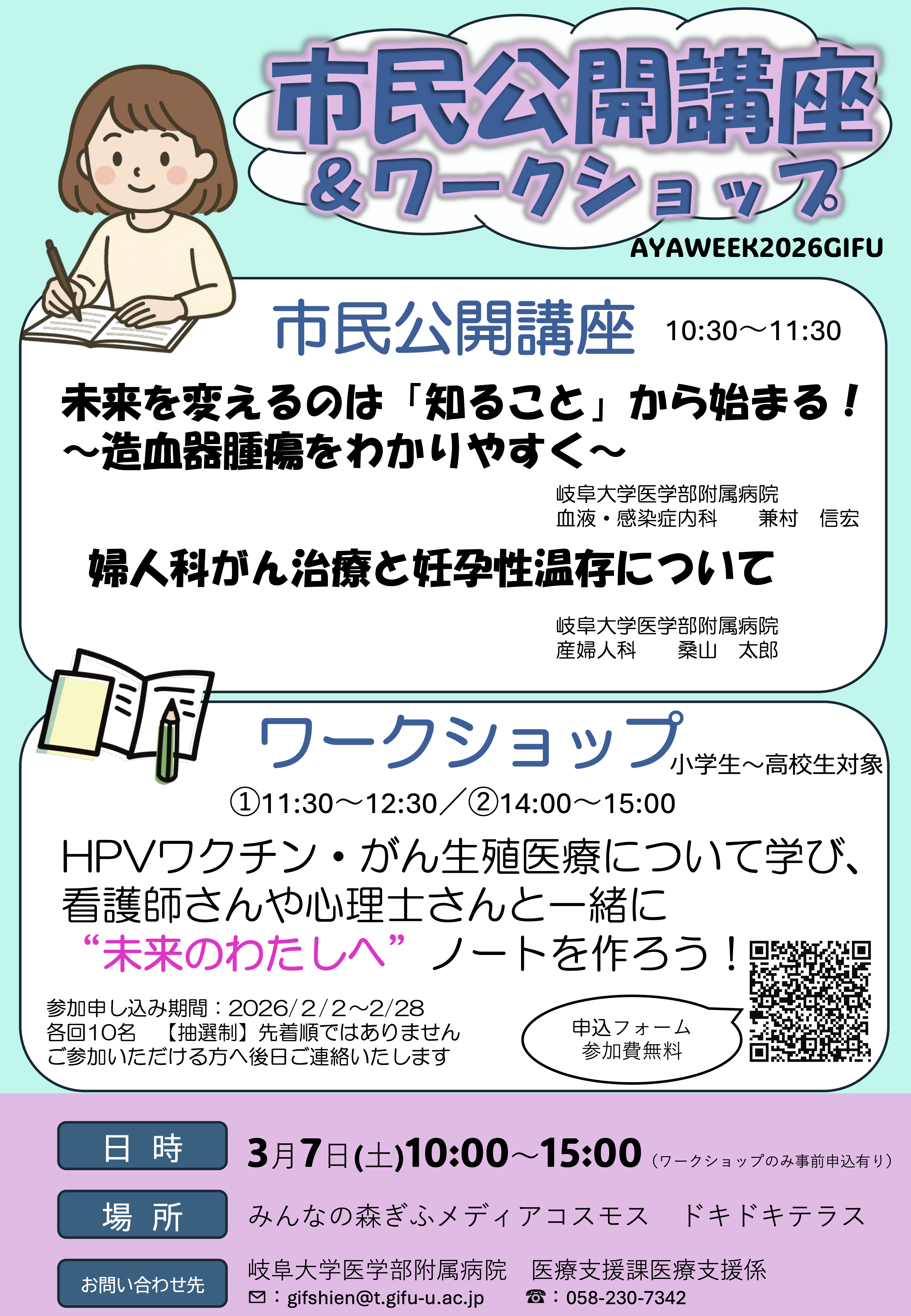 また、市民公開講座&ワークショップも開催します。