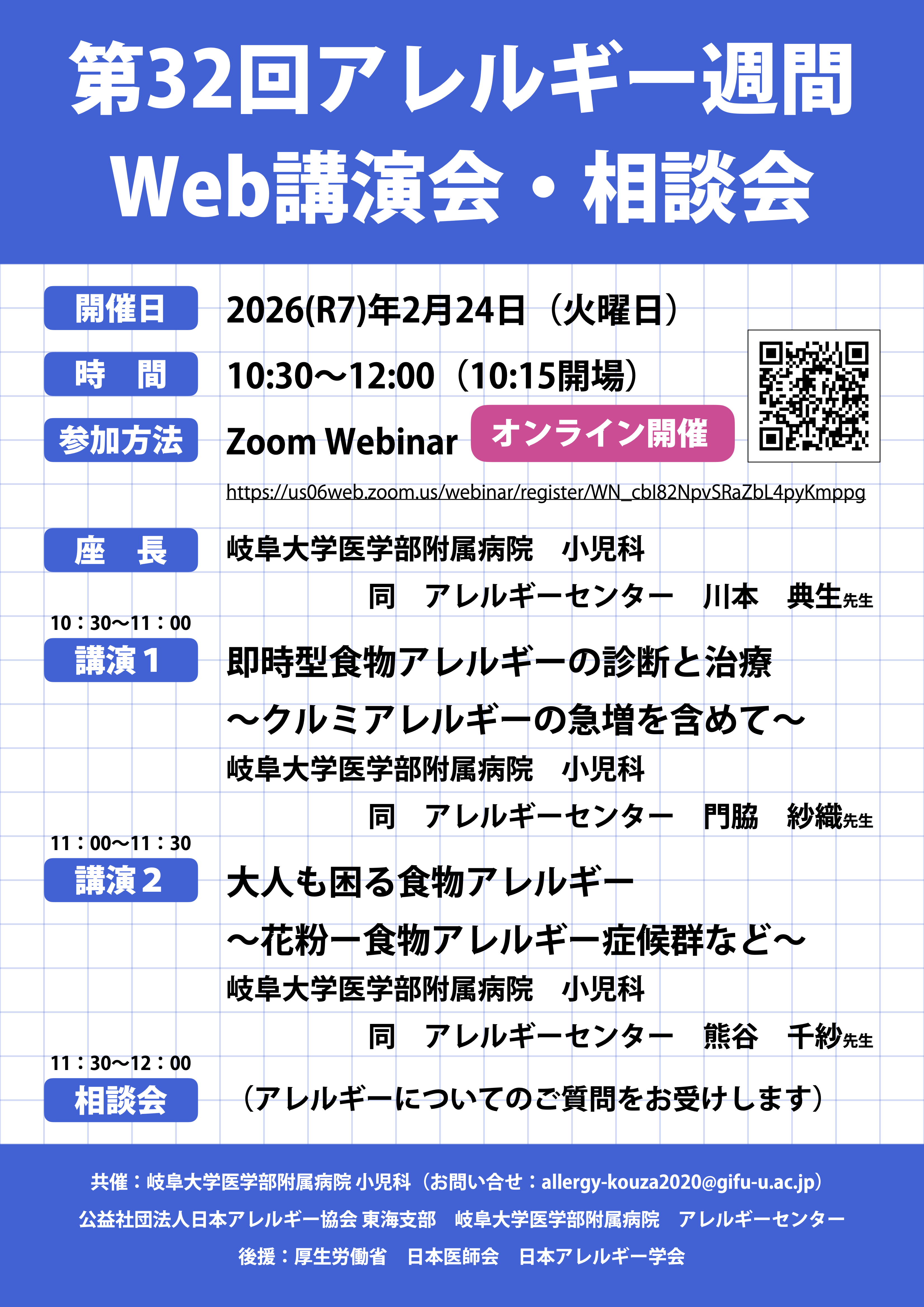 共催:岐阜大学医学部附属病院 小児科(お問い合せ:allergy-kouza2020@gifu-u.ac.jp)
