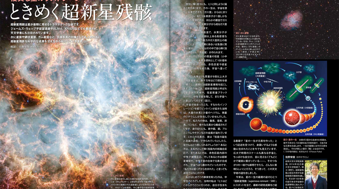 夜空に煌めく星にも生と死があり、数千万年から百億年という長い生涯をかけて循環しています。星間空間中の水素ガスが集まって星が作られると、星内部では炭素や酸素などの元素が合成されます。一生の最期には形成された元素を放出し、それが新しい星の「種」となるのです。