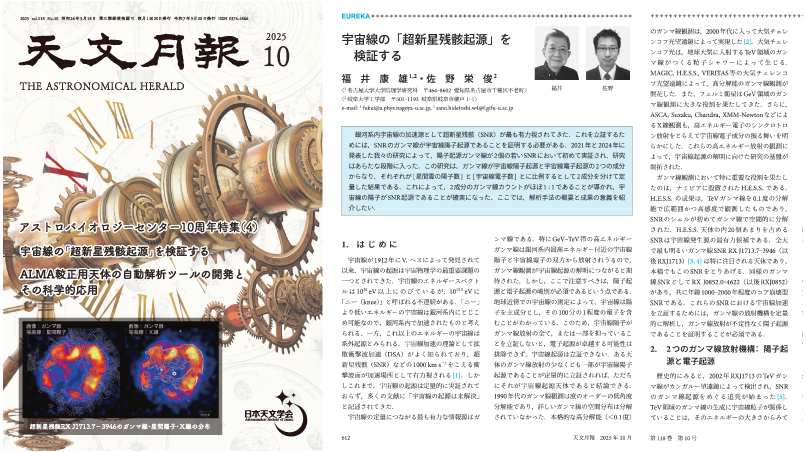 The Astronomical HeraldA feature article titled "Origin of Cosmic Rays in the Galaxy" was published in the October 2025 issue of the Astronomical Herald, the bulletin of the Astronomical Society of Japan. |