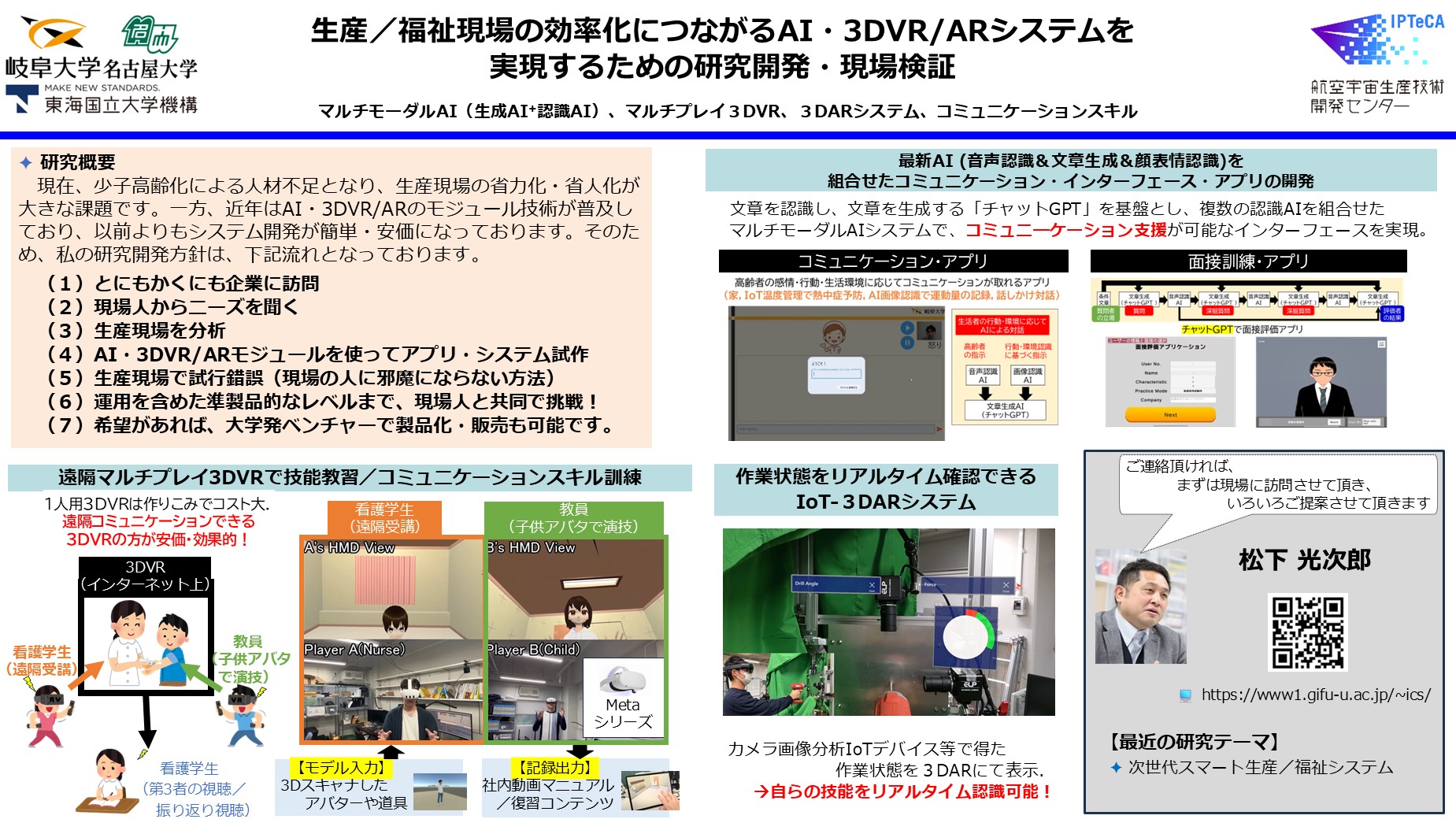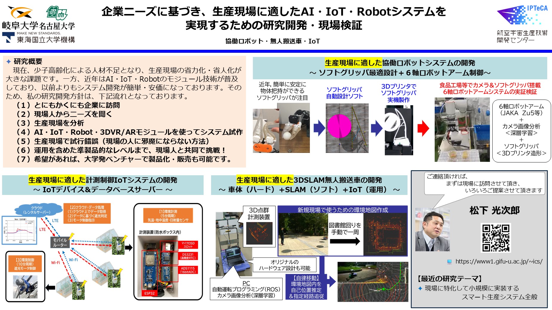 現場でのAI・IoT・Robot・3DVR/ARの実証研究の共同研究を多々行っています!もし,既製品がなく自社開発をしたいが,どのように行なうか困っている企業は,とりあえず,ご連絡ください.もし私が興味を持てば,日本全国どこでも現場訪問して,状況分析を行い,現場に適合するだろう試作システム提案させて頂きます.