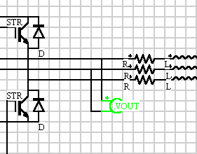 ここでは、線電流を観測するために、電圧源V(DC 0V)を置き、それに電流出力部品を接続しています。