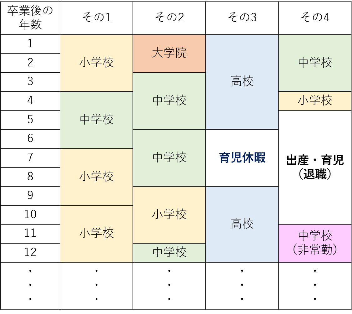 高等学校教諭の教員採用試験に合格。高等学校教諭となる。結婚・出産し、育児休暇を取得。その後復帰し、高等学校教諭として活躍。