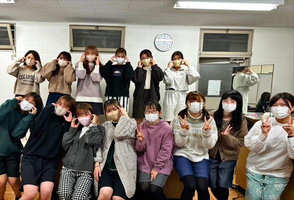家政教育講座は、学生の人数が少ないため、一人一人との距離が近く、楽しく毎日大学に来ることができます。また、横のつながりだけでなく縦のつながりもあり、新入生歓迎会や教育実習お疲れ様会、そしてゼミ配属を通して多くの先輩方や後輩たちと関わることができました。