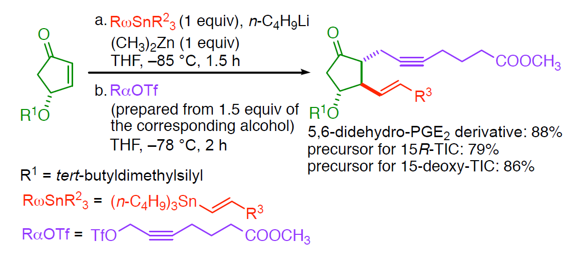 Organozinc-aided, HMPA-free, stoichiometric three-component coupling for the general synthesis of prostaglandins and stable prostacyclin analogs with biological significance, Hiroko Koyama, Atsuto Izumiseki, Masaaki Suzuki, Tetrahedron Lett. 60, 1467-1470 (2019).
