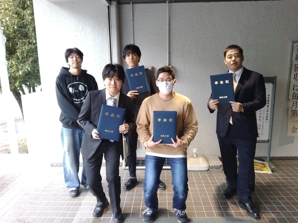 - (2024.04.02)3/25に本学の卒業・修了式が挙行され,当研究室からは1名のM2院生および1名のB4学生が修了・卒業しました.4/1に2名のM2院生,2名のM1院生,2名のB4学生の研究テーマが決定し,新年度がスタートしました.メンバーを更新しました.