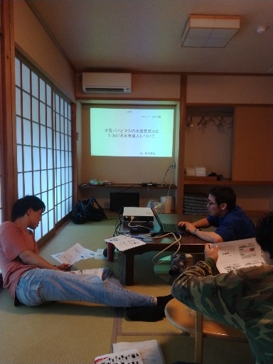 - (初日)美浜の宿泊先に到着後,後学期雑誌会を実施.研究室旅行ではなくゼミ合宿です.