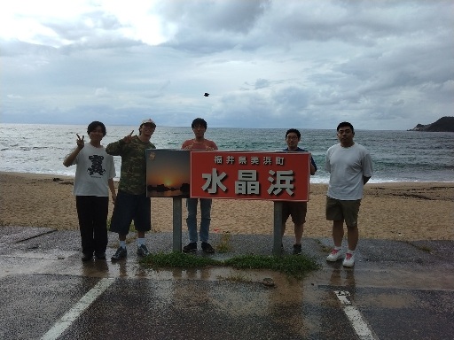 - (初日)ゼミ合宿先の旅館到着前に水晶浜を見学