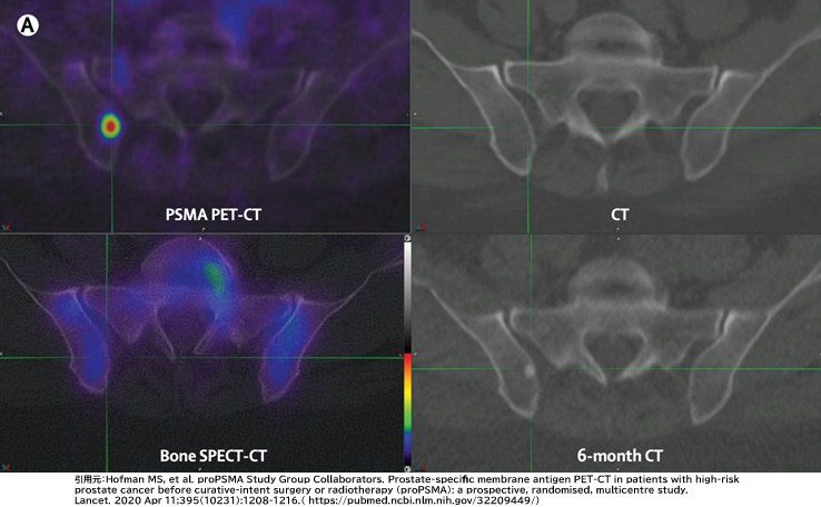 - Hofman MS, et al. proPSMA Study Group Collaborators. Prostate-specific membrane antigen PET-CT in patients with high-risk prostate cancer before curative-intent surgery or radiotherapy (proPSMA): a prospective, randomised, multicentre study. Lancet. 2020 Apr 11;395(10231):1208-1216.( https://pubmed.ncbi.nlm.nih.gov/32209449/)