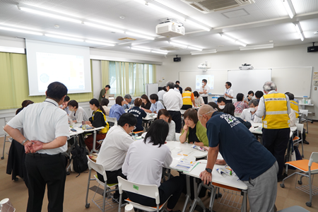 工学部の教職員や学生(留学生含む)約3,290人を対象に、第一部では30%、第二部では70%が帰宅困難者になるという想定で、グループワークを実施。