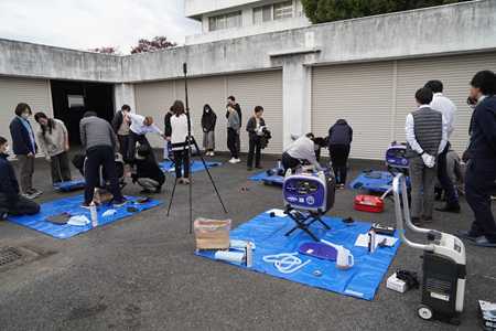 目的:防災資機材の基礎的な使用方法を習得し、大学全体の災害対応力向上を図る。