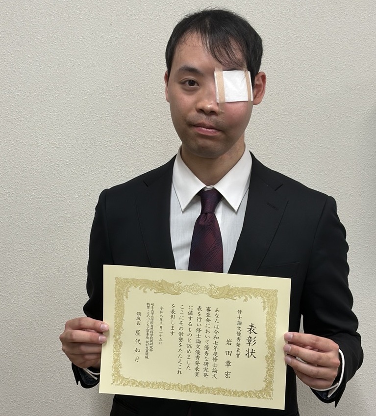 M2 岩田章宏が修士論文優秀発表賞を受賞しました.おめでとうございます.