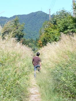遊歩道は自然があふれる道で・・・すすきが秋を感じさせてくれますが,暑かった.