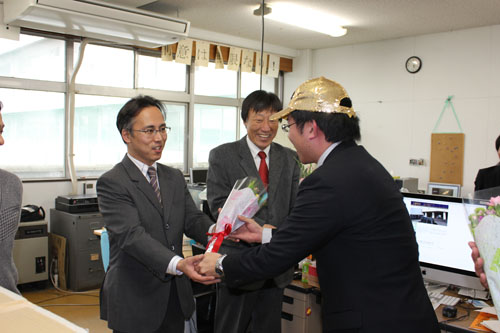 学生から教員へ,花束贈呈.