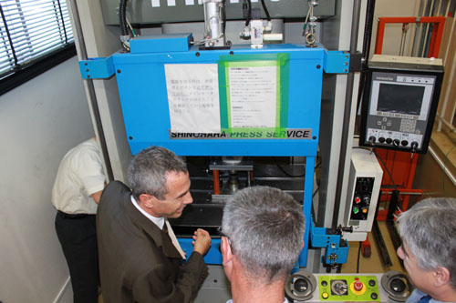 金型センターの付属工場内でコーヒーブレイク&ポスター展示